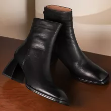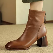 Use our battle tested marketing materials for Elegant Leather Square Toe Ankle Boots for Women – 6.5cm Heel, Back Zip