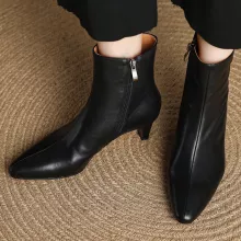 Use our battle tested marketing materials for Women's Genuine Leather Pointed Toe Side Zip High Heel Ankle Boots