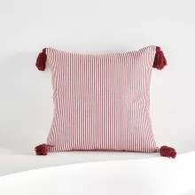 Use our battle tested marketing materials for Red and White Striped Pillow Cover with Tassel Fringe 18x18 Inch Cotton Blend