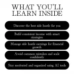 - Chapter 1: Finding the Right Side Hustle for You – Discover your strengths and passions, and explore different side hustle options. Includes a table comparing low-investment side hustles with skill-based ones.