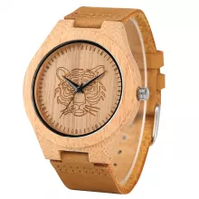 Use our battle tested marketing materials for Natural Bamboo Quartz Watch with Engraved Tiger/Elk Dial & Brown Leather Strap