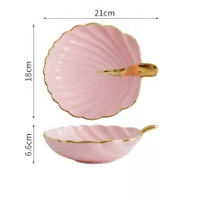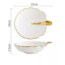 Use our battle tested marketing materials for Elegant European Ceramic Leaf Snack Tray with Gold Rim