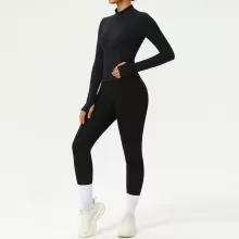 • 2-piece matching set: Long sleeve zip-up top and high-waisted leggings