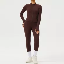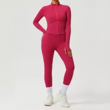 Step into confidence and comfort with this stylish 2-piece women's workout set, designed to keep up with your active lifestyle. Whether you're hitting the yoga mat, lifting at the gym, or simply running errands, this set offers the perfect blend of performance and fashion. Featuring a zip-up long sleeve top and matching high-waisted leggings, it’s made for movement, made for you. Crafted from soft, breathable fabric with just the right amount of stretch, this set hugs your curves in all the right places while giving you freedom to move. The sleek silhouette, paired with a modern zip-up neckline and discreet slit pockets, brings a fresh, sporty look that turns heads in and out of the studio.