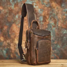 Use our battle tested marketing materials for Genuine Leather Men's Chest Bag Retro Crossbody Shoulder Bag with Multi Compartments
