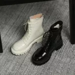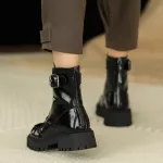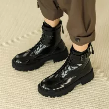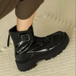 Embrace this season in confidence and comfort with our Patent Leather Women’s Snow Boots. Designed for the modern woman who refuses to compromise between fashion and functionality, these boots combine sleek looks with cozy insulation, making them your go-to footwear for chilly days. Whether you're running errands, stepping out for a casual outing, or riding through town on your motorcycle, these boots will keep you stylish, warm, and steady every step of the way. Crafted with a high-shine patent leather exterior and a plush wool lining, these boots provide both durability and a luxurious feel. The chunky heel and platform sole not only elevate your look—literally—but also offer added support and traction, ideal for slippery sidewalks or uneven terrain.Product Features