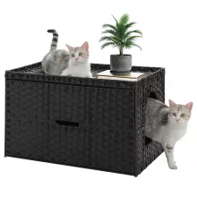 Use our battle tested marketing materials for Handwoven Rattan Cat Litter Box Enclosure - Hidden Furniture with Door for Large Cats