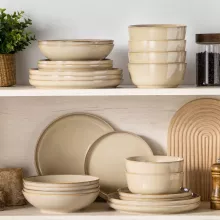 Use our battle tested marketing materials for Light-Brown Reactive Glaze Stoneware Dinnerware Set – 16 Pieces
