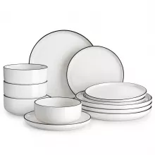 Use our battle tested marketing materials for 12 Pieces Porcelain Dinnerware Set with Black Rim – Elegant Tableware for 4