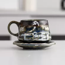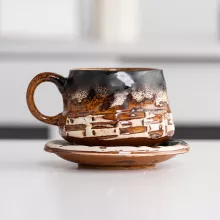 Use our battle tested marketing materials for Vintage Kiln Glazed Ceramic Coffee Mug with Saucer – Eco-Friendly Drinkware