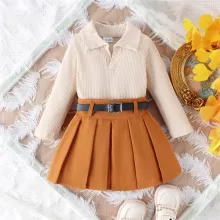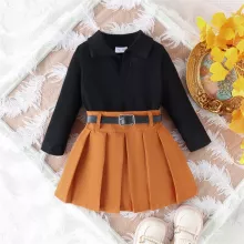 Use our battle tested marketing materials for Kids Fall Outfit Long Sleeve Top with Pleated Skirt & Belt Set