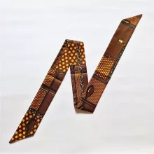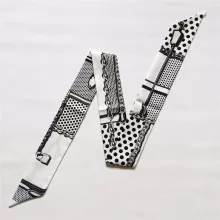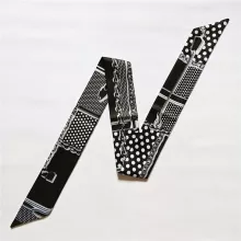 Use our battle tested marketing materials for Luxury Skinny Silk Scarf – Elegant Plaid & Chain Print Head & Bag Wrap