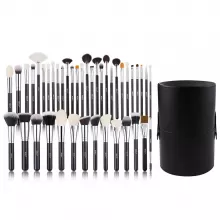Transform your makeup routine into a professional beauty experience with this 42-Piece Professional Black Makeup Brush Set. Designed for both beginners and experts, this all-in-one collection features every brush you need for flawless application — from foundation and blush to eyeshadow, contour, and blending. Whether you’re getting ready for a glamorous night out or creating a natural daytime look, these brushes ensure smooth, even, and beautiful results every time. Crafted with 100% natural goat hair, pony hair, nano fiber, and synthetic bristles, each brush feels luxuriously soft on the skin while providing precision control. Complete with a sleek black holder, it keeps your tools organized, travel-ready, and always within reach.