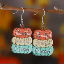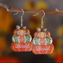 Use our battle tested marketing materials for Thanksgiving Pumpkin Tower Acrylic Drop Earrings – Festive Three-Color Harvest Design