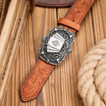 Use our battle tested marketing materials for Retro Western Buckle PU Belt - Unisex Brown Belt with Perforated Nails