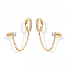 Use our battle tested marketing materials for 14K Gold Plated Double Piercing Chain Huggie Hoop Earrings with CZ Stud
