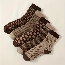 Use our battle tested marketing materials for 5 Pairs Retro Coffee Striped Mid Tube Socks – Korean Cute College Style