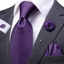 Use our battle tested marketing materials for Purple Silk Necktie Set with Hanky, Cufflinks & Brooch for Men