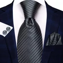 Use our battle tested marketing materials for Smoke Gray Silk Tie with Pocket Square & Cufflinks