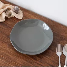 Use our battle tested marketing materials for Gray Ceramic Dinner Plate with Asymmetrical Design – Modern Round Dining Plate