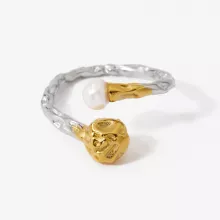 Use our battle tested marketing materials for Gold & Silver Lava Texture Pearl Opening Statement Ring 18K Plated