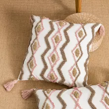 Use our battle tested marketing materials for Moroccan Geometric Diamond Tassel Cushion Cover - Pink and Coffee Colors