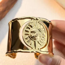 Use our battle tested marketing materials for Gold Plated Stainless Steel Wide Sun Pattern Cuff Bracelet for Women