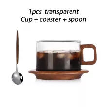 Use our battle tested marketing materials for Glass Coffee Mug with Wooden Handle, Spoon & Saucer Set – 200ml