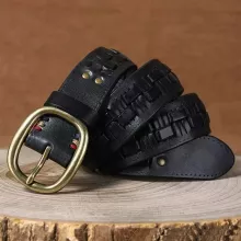 Use our battle tested marketing materials for 3.8CM Braided Leather Belt for Men with Copper Buckle - Stylish Woven Jeans Belt