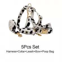 - Full Matching Set: Includes collar, harness, leash, bow tie, flower, and poo bag holder.