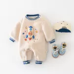 Give your little explorer a cozy and playful outfit with this charming baby romper. Designed with a 3D cartoon rocket and space-inspired accents, this one-piece adds a fun, futuristic vibe to your baby’s wardrobe. Perfect for parents who love unique, space-themed styles, it’s an outfit that makes every moment picture-worthy.Soft, Warm & Gentle on Skin