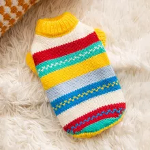 Keep your furry friend warm and stylish this season with our Colorful Striped Dog Sweater. Designed especially for small breeds like Maltese, Bichon Frise, and Teddy dogs, this knit pullover combines comfort, warmth, and vibrant charm. The sleeveless design makes it easy to slip on and off, while the soft polyester fiber ensures your pet stays snug without feeling restricted.Perfect for Cold Weather Adventures