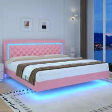 Use our battle tested marketing materials for Pink Floating Platform Bed with LED Lights and Diamond Tufted Headboard