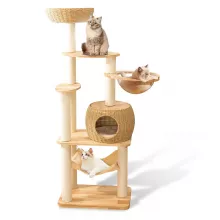 59" Modern Oak Cat Tree Tower — a perfect blend of design, durability, and comfort. Crafted from premium oak wood and natural materials, this multi-level tower invites your cat to climb, scratch, nap, and play in total luxury. Designed for medium to large cats, it’s a sturdy, beautiful addition to any modern home.