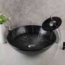 Use our battle tested marketing materials for Modern Black Art Glass Bathroom Sink with Faucet and Pop-Up Drain