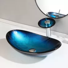 Use our battle tested marketing materials for Hand Painted Blue Tempered Glass Bathroom Vessel Sink with Faucet Set