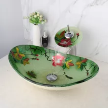 Transform your bathroom into a personal art gallery with this stunning hand-painted glass basin and waterfall faucet set. Each bowl is carefully crafted by hand, making every piece a one-of-a-kind work of art. The luxurious, oversized design and rich color details bring elegance and sophistication to any contemporary or traditional bathroom space. Whether you’re refreshing a guest bath or creating a spa-like retreat, this artistic basin makes an unforgettable centerpiece.Product Features
