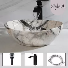 Use our battle tested marketing materials for Elegant White Marble Oval Vessel Sink Set with Matte Black Faucet