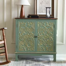 Use our battle tested marketing materials for Vintage Green Sideboard Cabinet Gold Resin Embossed Accent Cabinet