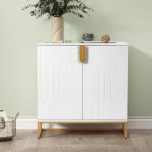 Use our battle tested marketing materials for 2-Piece Wood Grain Cabinet Set Gold Metal Legs Storage Sideboard