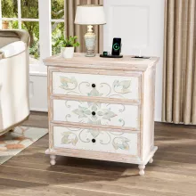 Use our battle tested marketing materials for 31.5" Wide Washed White Nightstand with Charging Station and 3 Drawers