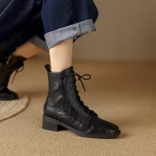 Use our battle tested marketing materials for Winter Genuine Leather Ankle Boots for Women – Square Toe Chunky Heel Chelsea Style