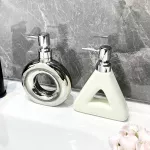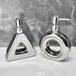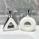 Transform your bathroom into a stylish sanctuary with this Silver Ceramic Soap Dispenser. Designed with a unique abstract hollow round triangle shape, this dispenser is more than just a practical item—it’s a statement piece. Its shimmering silver finish adds a touch of sophistication, blending effortlessly with modern, minimalist, or luxury-inspired décor. Whether you’re upgrading your home bathroom or adding elegance to a guest washroom, this dispenser brings both function and flair to your countertop.Features That Stand Out