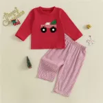 Dress your little boy or girl in festive charm this season with our Toddler Christmas 2-Piece Outfit featuring a cozy long sleeve pullover and matching stripe pants. Designed with a delightful embroidered truck carrying a Christmas tree, this outfit captures the warmth and joy of the holidays while keeping your toddler comfy all day long. Made from a soft blend of 95% cotton and 5% polyester, it’s gentle on sensitive skin and perfect for both boys and girls.Perfect for the Holiday Season