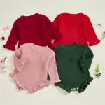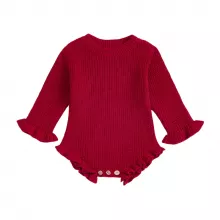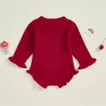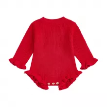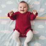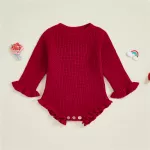 Keep your baby cozy and adorable through the chilly months with this soft knit baby romper. Crafted from a gentle blend of 95% cotton and 5% polyester, it’s designed to provide warmth without sacrificing breathability. The solid color and timeless knit texture make it a perfect choice for everyday wear, family photos, or festive holiday gatherings. Whether your little one is napping, playing, or celebrating their first Christmas, this romper offers both comfort and charm. Featuring a round neckline, long sleeves, and a ruffled sweater design, this jumpsuit combines cuteness with functionality. The covered button closure ensures easy dressing and diaper changes—so you can spend less time struggling and more time cuddling. Available in a variety of colors, this unisex design suits both baby boys and girls aged 0–12 months.Product Features