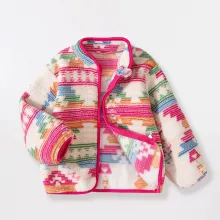 This fleece jacket isn’t just about warmth—it’s about confidence and comfort. The soft inner lining feels like a gentle hug, keeping her cozy all day. The bright, artistic stripes make her stand out in the sweetest way, while the durable zipper ensures easy dressing. Whether she’s running, playing, or just enjoying family time, this jacket moves with her and keeps her comfortable.Perfect for Every Season Transition