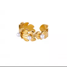 Use our battle tested marketing materials for Stainless Steel 18K Gold Plated Leaf Pearl Open Ring for Women