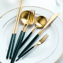 Use our battle tested marketing materials for Elegant Green Golden Stainless Steel Cutlery Set – Modern European Tableware