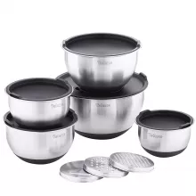 Use our battle tested marketing materials for Set of 5 Stainless Steel Non-Slip Mixing Bowls with Graters & Lids – Multi-Size Nesting Set