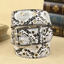 Use our battle tested marketing materials for Women's Bohemian Python Pattern PU Belt – Black & White Double Buckle Fashion Accessory
